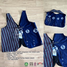 Saisa ToteVest dengan bahan dasar kain Jumputan dengan motif dan warna eksklusif karena limited edition. Kain jumputan hasil produksi sendiri dan kami lakukan secara handmade. Heva Vest adalah atasan kasual yang bisa kamu pakai untuk nongkrong cantik sama teman atau datang ke acara formal seperti kondangan.